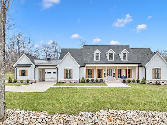 Exquisite, near new custom built, one level home w/ pool on 23 acres! Enjoy views and privacy! Gated, concrete lighted driveway. Chef's kitchen- pot filler, gas range, lrg, island, quartz counters, spacious pantry w/ bev/wine refrigerators and ice maker. Designer lighting, plantation shutters and custom finishes throughout. 4BR + recreation room, and office off primary suite. Tiled and granite baths. Spacious front and back porches- outdoor kitchen and woodburning fireplace overlooking salt water pool and spa! Fenced area with low maintenance turf. Irrigation with several zones. 4 Car garage ( 3/1 breezeway) w/ prof. finished floors, electronic lift storage, instant hot water. Convenient location in No. Maury County - easy access to Hwy-I-65!
