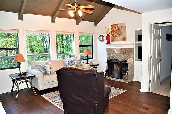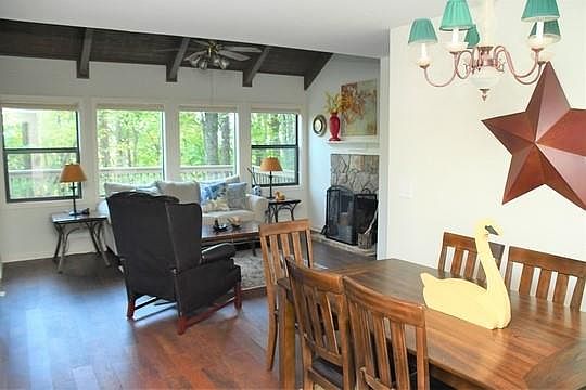 Fantastic weekend getaway in Big Canoe located on a large (.9 acre) private lot in Big Canoe. Plenty of room for guests with 3 bedrooms and 3 full baths. A large kitchen for preparing meals and a sizable dining room. The great room features beamed ceilings and a stone fireplace for a warm fire on cool autumn nights. The spacious upper-level master suite has a vaulted beamed ceiling and a large private bath with dual vanities. The main level has two bedrooms with full baths. You can relax on the screened porch & grill on the large deck that spans the front of the home. if you are looking for a private weekend retreat in Big Canoe...this is it.