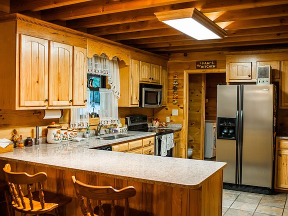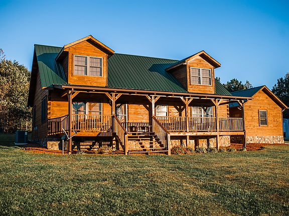 This log home has one of the nicest views around Patrick County. Looking out of the front of the home, you have an amazing view of the surrounding countryside and mountains. The home features three bedrooms and 2.5 baths plus a garage. The interior of the home has lots of natural wood and hardwood floors. The custom kitchen has hickory cabinets, granite counter-tops, and stainless steel appliances. The home sits in a private setting and the big front porch is perfect for enjoying the wonderful views. One-level living with the master suite and laundry on the main level.