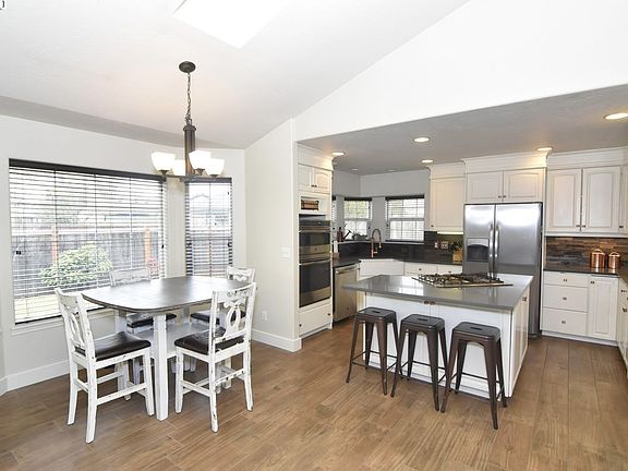Beautiful Light & bright, single level custom home with vaulted ceilings, skylights, great room concept. Solid surface countertops in kitchen and formal dining room, gas stove, farmhouse kitchen sink, new wood tile floors and carpet. Separate office. 10 x 10 shed with power, 3 car garage! Home backs up to church grounds. Quiet cul-de-sac location.