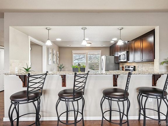 Wonderfully maintained, updated, and move-in ready! This 3-bedroom, 3-bathroom townhouse offers space, style, and outstanding convenience. The oversized 2-car garage includes a large under-stair storage area, and with two additional off-street parking spaces, there’s plenty of room for all your gear, toys, and guests. Inside, the bright, open layout feels fresh and modern. Large windows flood the space with natural light and showcase the clean, contemporary finishes. The kitchen shines with granite countertops, pendant lighting, stainless steel appliances, ample cabinet space, and a large island with bar seating—making it the heart of the home and perfect for casual meals or entertaining. The main level has a “great room” feel, offering space for both dining and watching your favorite team with friends. Step out onto your private balcony for morning coffee or evening relaxation. Upstairs, you’ll find three bedrooms, including a spacious primary suite with an ensuite bath featuring designer finishes like subway tile and a European glass shower enclosure. A second full bathroom serves the other two bedrooms—ideal for families, guests, or roommates. Front-loading washer and dryer, along with all appliances, are included. This lovely property is truly turnkey! And the location? You can’t beat it. Just 10 minutes to downtown Denver and 20 minutes to Boulder, with quick access to Pecos Station (1 mile) and the Clear Creek bike path (just 1 block away). Enjoy sweeping views of the city skyline and mountains—all from your own neighborhood. Schedule a showing today—this one’s a must-see!