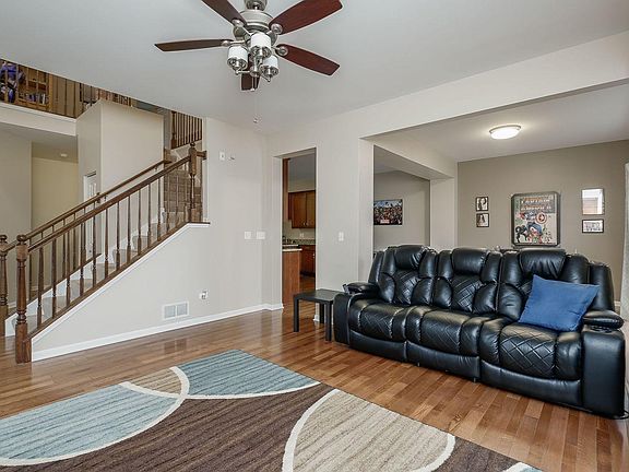 Ideal location!! 2 story duplex features 3 Bedrooms. Great floor plan. Living room is wired for surround sound. Formal dining room with sliding glass door to backyard. Kit w/center island, granite counters, 42" cherry color cabinets & stainless steel appliances. Breakfast area w/table space. Hardwood flooring throughout 1st floor. Large master bedroom with walk in closet & private bath w/dual sink, granite countertop, whirlpool tub & separate shower. Loft space perfect for computer area, tv area or play area. Two additional bedrooms with one that offers walk in closet. Great 2nd floor laundry. Full basement, 2 car garage. Great patio to entertain. Minutes from expressway & close to restaurants & shopping!