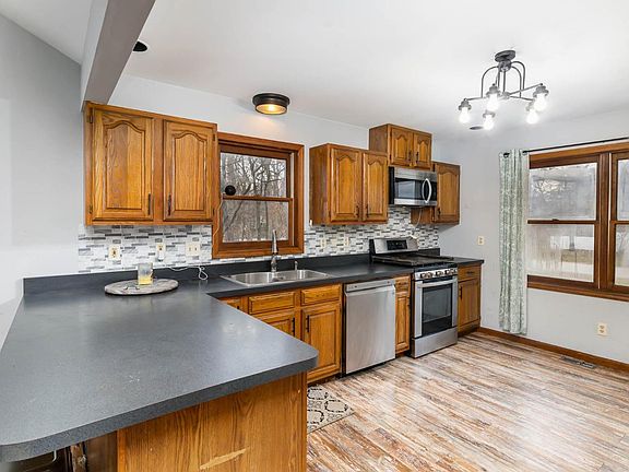 Peaceful COUNTRY SETTING, but still close to town! This MOVE-IN READY bi-level w/ possible RELATED LIVING is situated on an acre of WOODED & SERENE LAND and offers 2600 sq ft of living space, 2 car ATTACHED GARAGE & many updates! Featuring large OPEN-CONCEPT upper level w/ LARGE LIVING ROOM, freshly updated kitchen including newer appliances, dining area w/ vaulted ceilings + back deck off dining room that offers lovely view of backyard including newer ABOVE GROUND POOL. Lower level features a 2ND KITCHEN AREA, rec space, & large unfinished laundry room! Newer replacements include lighting fixtures throughout home, bathroom vanities, & all flooring!