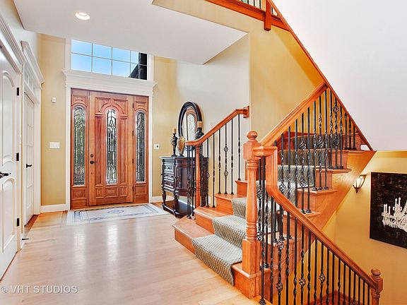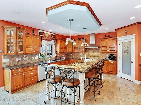 Builder's 4,000 sq ft custom dream home with the finest of quality and craftsmanship. This gorgeous 5 bed 3 full bath home has many distinguishing features: expansive gourmet kitchen with custom maple cabinetry, SS appliance package, granite counters and an over-sized island with seating for six. Main level has hardwood floors, 9 ft custom ceilings, elegant stone fireplace, 150" projection TV with surround sound in the family room. Elaborate master suite with his/hers walk-in closets, whirlpool tub and over-sized shower. 1,800 sq ft unfinished *WALK OUT* basement with heated floors, bath rough, above-grade windows and 9 ft ceilings. Outside is professionally landscaped, large 22x20 stamped concrete patio with brick fireplace. Also note: heated two-car garage, fire sprinkler system, central vacuum, intercom/music system, Jeld Wen windows, upper-level laundry, dual high efficiency HVAC and so much more. THIS PROPERTY IS A RARE FIND, A TRUE DELIGHT. MUST SEE TO APPRECIATE!