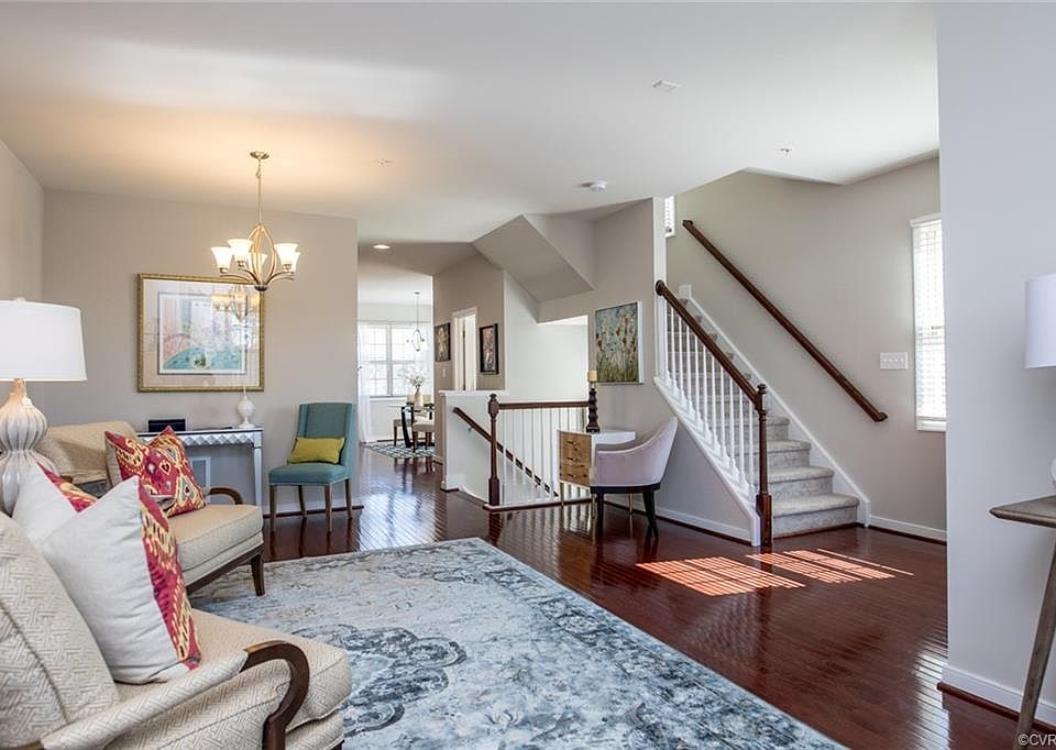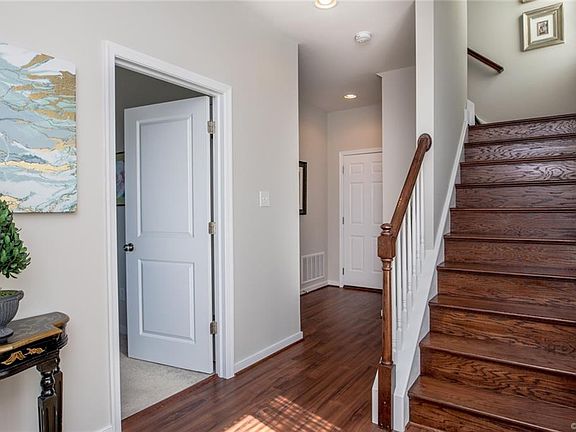 This luxurious end unit with rooftop terrace is beautifully wrapped with 3 balconies and tons of windows giving natural light throughout. Covered with elegant brick and hardi-plank siding plus a 2-car garage. Hardwood floors grace the foyer & all of the 2nd level. The first level includes a bedroom and full bath #3. On the main level you are welcomed by a beautiful gourmet kitchen and breakfast area with Bay window and balcony. The kitchen offers a huge center island, granite counter-tops, tile backsplash, pendant lights, ample cabinets and stainless steel appliances. The spacious great room is perfect for entertaining and a glass door leads to another balcony. The 3rd level has 2 master bedrooms which both feature walk-in closets and full baths. Full bath #1 has a beautiful tiled Roman shower with accent tiles. Full bath #2 with a garden tub/shower combination. Rooftop terrace is a private escape that offers an amazing view! Enjoy low maintenance and let the HOA take care of the yard work! Conveniently located, only minutes from I-64 and Short Pump Town Center.