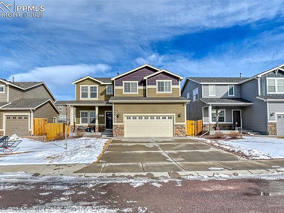 Welcome home to this beautifully designed 5-bedroom, 3.5-bathroom home, complete with an office/study den, in the desirable Paint Brush Hills community. From the moment you step inside, you’ll be captivated by the elegant finishes and modern design that make this home truly special. The gleaming luxury vinyl plank flooring throughout the main level, and fully finished basement, offering both durability and style. Enjoy the private office/study den with glass French doors is perfect for remote work or a quiet retreat. The newly renovated, custom-designed kitchen featuring soft-close, glass-displayed cabinetry extending to the ceiling with a brilliant stove hood as the kitchen’s centerpiece. As you are drawn to the elegant gray-veined quartz countertops with subway tile that soars to the ceiling and decorative open shelving for a timeless look. State-of-the-art stainless steel appliances, including a built-in drawer microwave, farmhouse sink with a touch-less faucet for modern convenience. The second story has a cozy sitting/relaxing area, four well-appointed bedrooms, including the primary suite with a 5-piece bath, large walk in closet and spacious laundry room with ample storage. The fully finished basement has a large living/game area with potential for a bar setup, 5th bedroom and bathroom, ideal for guests or a private suite. Fall in love with the finished garage with soaring 12.5’ ceilings, extensive storage, insulated garage door, and whisper-quiet opener. Benefit from the South-facing lot, providing low-maintenance snow removal and year-round sunshine. The back yard is fully fenced with a 35’x15’ stamped edged concrete patio, built-in natural gas fire pit and 800 sq. ft. of pet-friendly turf. Gaze upon the views of pikes peak out your front door in this prime location that is walking distance to schools, shops, and amenities. This home is a true gem, combining luxury, comfort, and modern convenience. Don’t miss your chance to own this stunning property!