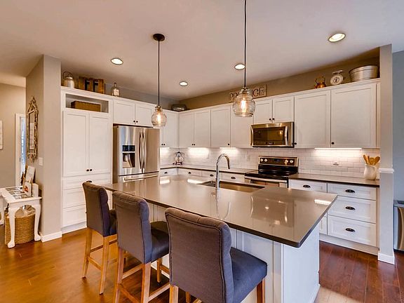 Price Reduction! Why buy new when you can enjoy this beautiful 5 bed 3 bath Shea Model 4006 in Stepping Stone? Entertaining is easy in the open kitchen boasting all stainless appliances including double oven, fridge, microwave and dishwasher, upgraded soft close white shaker style cabinets with grey quartz countertops, subway tile backsplash and a huge, inviting island. Main level has a carpeted bedroom and full bath to accommodate guests. The rest of the main level has rich hard surface flooring. Living room is accented with a shiplap wall and custom shelves. Plantation Shutters and ceiling fans are throughout the home. Upstairs has four bedrooms, laundry and spacious loft. INCLUSIONS: Accent shelf and bench in entry, wall items over coffee bar, wall letters in kids room, all window coverings. Home is pre-wired for alarm system. Unfinished basement has bathroom rough-ins. Enjoy the sunsets on the back patio right off the kitchen. 2 car garage is 23' deep for longer vehicles.
