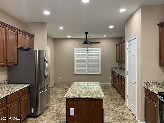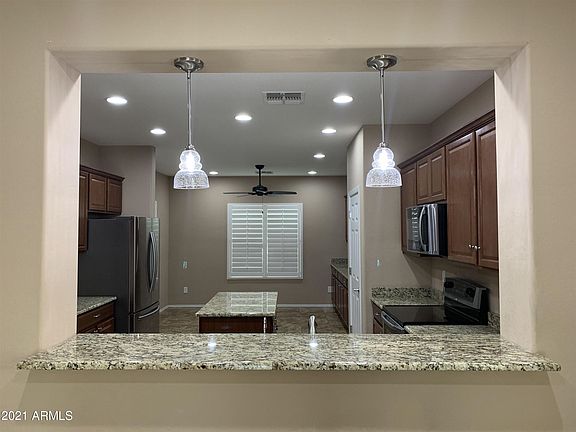 This beautiful move in ready home boasts $85,000 in upgrades. The large kitchen includes granite countertops, stainless steel appliances, tons of cabinets, an island and pantry. The backyard includes a large covered patio, gazebo with fan, travertine pavers, synthetic turf and a spa. There is brand new stain master carpet with memory foam padding along with lots of tile. The third bedroom is set us as an open den with beautiful hardwood floors. The large master bedroom has a big closet, double sinks and a custom walk in shower. The home also includes Low E insulated windows, window shutters, tankless water heater, soft water, large garage, gas stub to range, utility room cabinets, surround sound in family room and speakers on the patio, 6 ceiling fans, 23 recessed bright LED lights.