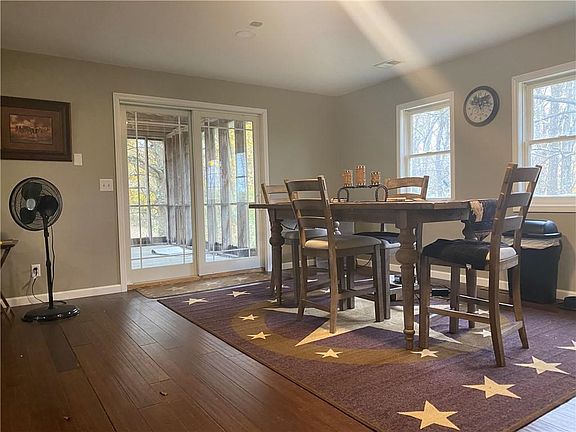 Country living is the perfect description for this home. Over 6 acres mostly wooded. Detached garage. Large screened patio overlooking the land is so relaxing! Large, open concept living, dining and kitchen with balcony. The upstairs kitchen is a blank slate if you choose to redesign. Bedrooms upstairs are large. Master has private bath. Office could be a bedroom but currently used as an office. The basement has a full kitchen, large living room with sliding doors for outdoor access, full bath and 2 bedrooms. Newer roof, HVAC.
