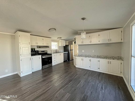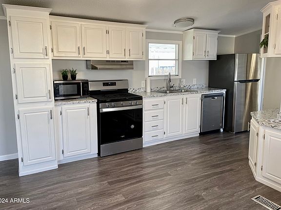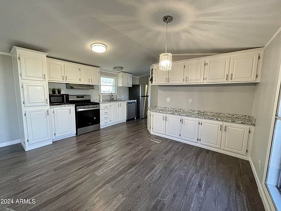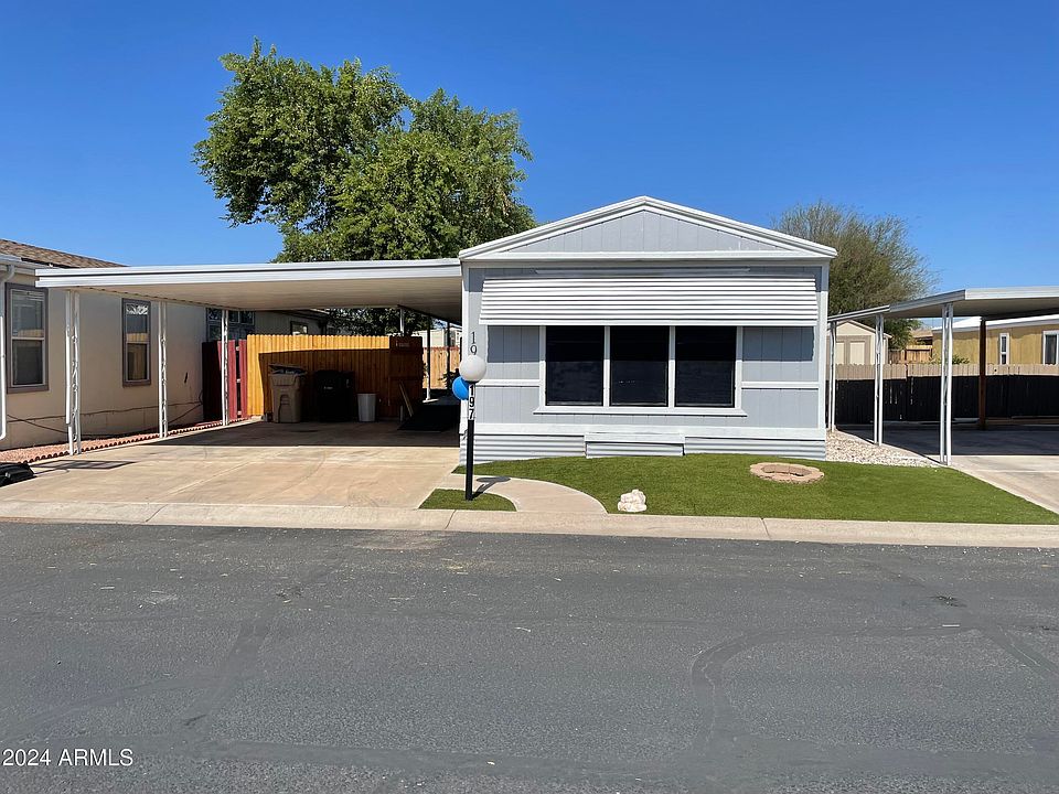 LOW LOT FEE! $510! All ages park. Remodeled in 2022. 3 bed 2 bath ready for a new owner to make memories. Spacious open floor plan, new plumbing, updated appliances, smooth finish drywall, and vinyl wood look flooring in common areas. Split floor plan. Master suite has huge master bath with separate his and hers vanities, garden tub, and separate shower. Fully fenced yard with low maintenance artificial turf, plenty of shade, storage shed, and covered patio. 2 car covered carport. The roof was recently sealed.