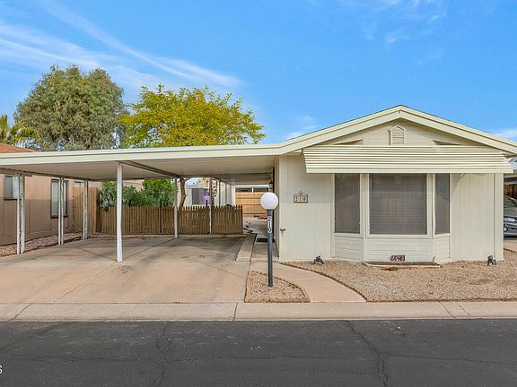 Move in ready home in Polynesian Village. Updated with modern touches this 2 bedroom, 2 bathroom manufactured home is ready for its new owners. Open concept family room and kitchen, Primary bedroom featuring ensuite, and washer and dryer. 2 covered carport spaces, fire pit, and best of all located directly across from the awesome community center featuring a pool, spa, and work out center. Great opportunity in an excellent location.