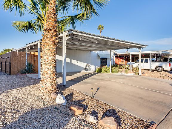 Embrace the charm of this beautifully remodeled 2-bedroom (plus an extra bedroom - no closet) manufactured home nestled in a community with abundant amenities. Revel in the luxury of a new A/C unit and appliances, all included in this turnkey property. Enjoy the privacy of your own fenced yard. Spacious primary suite with an ensuite 3/4 bath. The full guest bath complements the thoughtful split floor plan. The dining area and breakfast bar provide delightful spaces for both casual and formal dining. In this community, every day feels like a vacation with access to a pool, spa, workout room, and a kids play area. The land lease fee covers water, sewer, and trash, ensuring a hassle-free and enjoyable lifestyle in this inviting haven