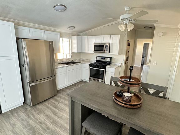 REDUCED!!! Motivated Seller!!! Welcome to your cozy new home. This 2BD 2BA is extremely clean with $20 k in upgrades, The modern style kitchen was remodeled in 2022 along with flooring, paint, counters, cabinets and all stainless steel appliances. This home has a GAS stove, Almost new stainless steel refrigerator, white front loading washer and dryer included. $4k in new wood fencing. The large yard has a secured, enclosed storage tool /work/ shed for projects and inspirations. This Gem is a must see!