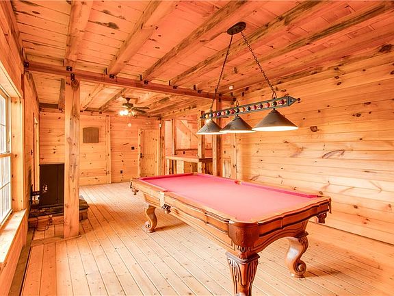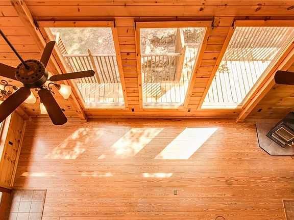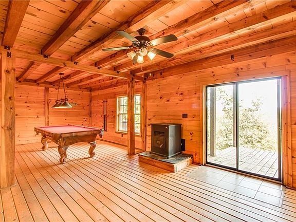 One of a kind, Rustic home located at the edge of town with Soaring ceilings, Windows all around to enjoy the creek and mountain views from every room! Approx 2600 sq. ft. 4 bedroom 1.5 bath. 3 living rooms, one on each floor with Bar in the walkout basement. Decks on 3 sides. UTV storage under the home with access inside! All located on 35 acres of partial pasture and woods. Creek access and pond! City water, all electric with wood burning fireplace! MUST SEE!