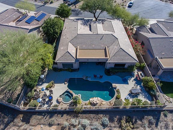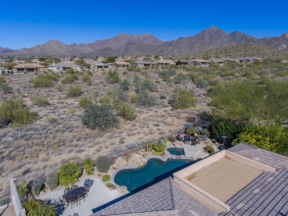 Mountain and City Light views abound from this gorgeous home with a tranquil backyard featuring a heated salt water pool & spa w/rock waterfall, extended cool-deck patio, view deck, built-in BBQ, citrus trees and rose garden. Inside you'll find Travertine floors in all traffic areas, granite counters & backsplash, stainless steel appliances, 5 burner gas stove, R/O system, maple cabinets and breakfast nook w/Plantation shutters. Large Master suite w/sliding door to patio. Master Bath has walk-in shower, jetted tub walk-in closet w/Elfa orgainzers. The 4th bedroom is currently used as a study w/built-in cabinets/bookshelves & walk-in closet. Plantation Shutters can be found in all bedrooms. There's Surround Sound, New (2016) 14 SEER Trane HVAC, New (2017) water heater, water softener....