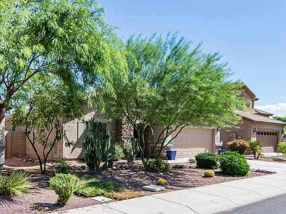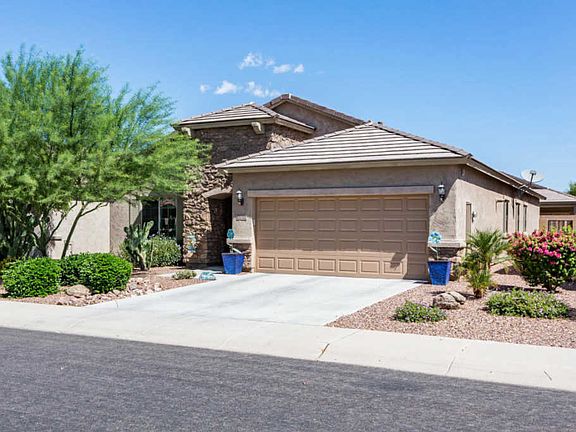 Beautiful one-owner home in Bella Via with 3 bedrooms + den & 2 baths in 2112 SqFt with an open great room floor plan. The eat-in kitchen features an abundance of espresso-stained maple cabinetry, Corian counters, glass tile backsplash, gas range, stainless appliances, pantry, breakfast bar & island with pendant lighting. Sliding doors lead out from the great room to the covered patio & backyard. The private master suite has double door entry, bay window sitting area, crown molding & private bath w/dual sink vanity, oversized shower & walk-in closet. Hall bath also has double sinks & both baths have Granitex counters & shower surrounds. Other features include plantation shutters, laundry room w/cabinets & utility sink, water softener, R/O system, front security screen door & 2 car garage w/overhead storage. Bella Via amenities include a dog park, amphitheater, tot lots, walking paths, exercise stations, ramadas/BBQ stations, splash pad & basketball court! See today!