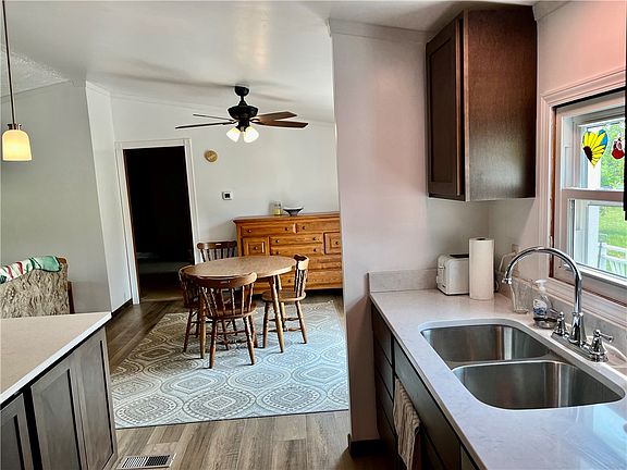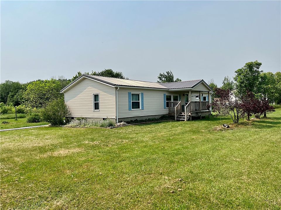 Nicely updated ranch home on 2+ beautiful acres is move in ready! Remodeled applianced kitchen with quartz countertops, updated cupboards, new windows, luxury laminated flooring, metal roof, furnace w/AC. Master suite with his/her closets and full bath. Freshly painted interior w/cathedral ceilings and crown molding, mud room and deck too. 12 x 20 insulated work shed with vent free heater and window air conditioner. So much home for the price!!