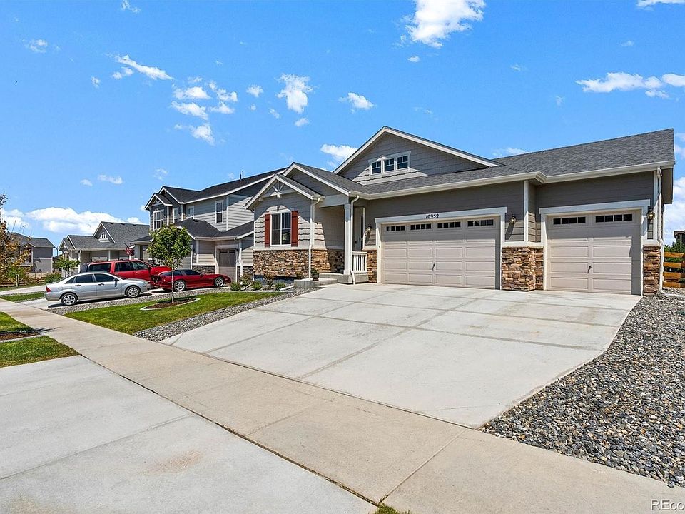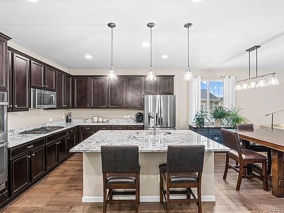 Better than new 5 bedroom, 3 bathroom ranch style home in Reunion! This floorplan offers 5 bedrooms with 3 bedrooms on the main level, including a large primary suite, with dual head shower, double sinks, and plenty of closet space. The gourmet kitchen has an oversized island complete with double ovens, gas stove top, and large pantry. The great room boasts lots of natural light with a double wide sliding glass door and custom fireplace. The basement was builder finished with a rec room, kitchenette, 2 big bedrooms with walk in closets, full bathroom, and storage/workout room. Professionally landscaped backyard! 3 car garage with ninja floor coating. Great for a large family or multi-generational living. This house is move in ready, skip the wait time for a new build and schedule a private showing today!