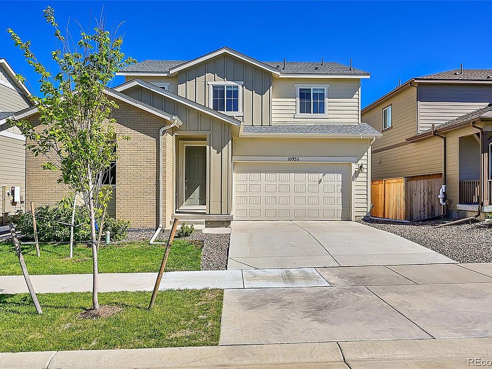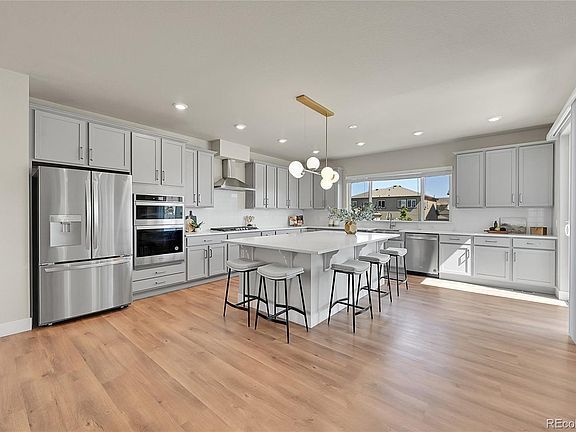 This is a rare opportunity to own a nearly new modern home backing onto a peaceful greenbelt. It has fully landscaped and fenced yard for added privacy. With upscale finishes throughout, the open floor plan is bathed in natural light from large windows. The main level includes a grand gourmet kitchen, a spacious great room, formal dining area, and a versatile study that can serve as a 5th bedroom. The extended large kitchen boasts stainless steel gourmet appliances, a generous island that seats many, slab white quartz countertops, and an undermount farm sink. Luxurious LVP floor is throughout the main level. Upstairs, a cozy loft leads to the expansive master suite, complete with a luxurious 5-piece bath, standalone tub, and large walk-in closet. Three additional bedrooms and a beautifully designed bathroom with double sinks offer comfortable, versatile living space. The unfinished basement, with tall ceilings, provides endless potential for expansion. Conveniently located near Lone Tree Town/City Center, Parker Main Street shopping district, Park Meadows Mall, Centennial Airport, Major Business Parks, numerous public/private golf courses, recreation centers and major highways (I-25 and E-470), this immaculate home is perfect for entertaining and enjoying a private lifestyle. This move in ready home is available for quick occupancy.