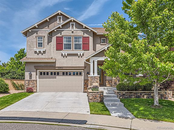 Simply AMAZING! Check out this beautifully updated and meticulously maintained home in the sought-after Hearth division of Highlands Ranch! Boasting a flexible floor plan with 5 bedrooms, 4 bathrooms, a loft AND a huge basement, this wonderful home provides plenty of space to suit your needs. The manicured front yard and front porch welcome you as you step through the custom front door into this beautiful home, featuring gleaming hardwood floors throughout most of the two main levels. You're sure to be impressed by the gourmet kitchen's gorgeous slab granite counters, custom tile backsplash and surrounds, stainless steel appliances, gas range with retractable vent, and butler's pantry with a wine cooler. The main level bedroom is the perfect office or guest suite, with a nearby full bathroom. Step upstairs to discover the spacious primary suite, complete with a luxurious upgraded 5-piece bathroom and a huge walk-in closet with custom shelving and drawers! Three more sizable bedrooms and two additional full bathrooms round out the second floor. One more level upstairs hosts a large bonus room/flexible space area, great for an office, playroom, workout area, or whatever your heart desires! Wait until you see the expansive deck - a large outdoor space perfect for entertaining or just relaxing, with custom pull down shades for comfort, and look at those mountain views! This home has too many wonderful features to list here - you simply must see it for yourself! Don't miss out!