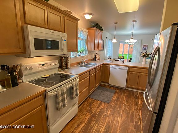 Beautiful townhome/condo with private fenced backyard & 2 car garage. Just off the main road & across from new Eagle River Elementary School. Spacious home w many new or 1 yr old additions and upgrades. New fence, gutters, hot water heater, furnace, dishwasher, microwave, carpet, and back deck. Cozy up to the gas fireplace or go out & hike around the area. Minutes to JBER & all of Eagle River.