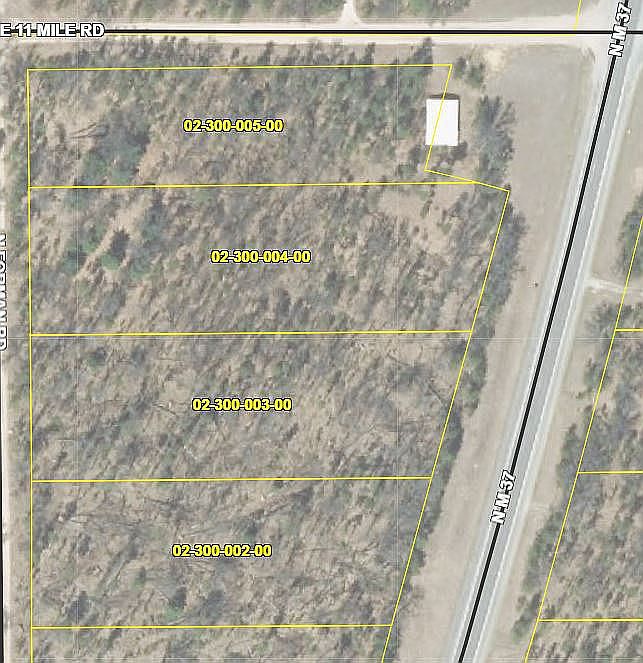 Close to ORV Trails, Hunting, Fishing and Hiking. Property is 4 parcels being sold as a combined 9 acers, property borders M37, 11 Mile Rd and Forman Rd. 30' x 48' Pole barn has power and great storage a portion could be converted to a cabin with