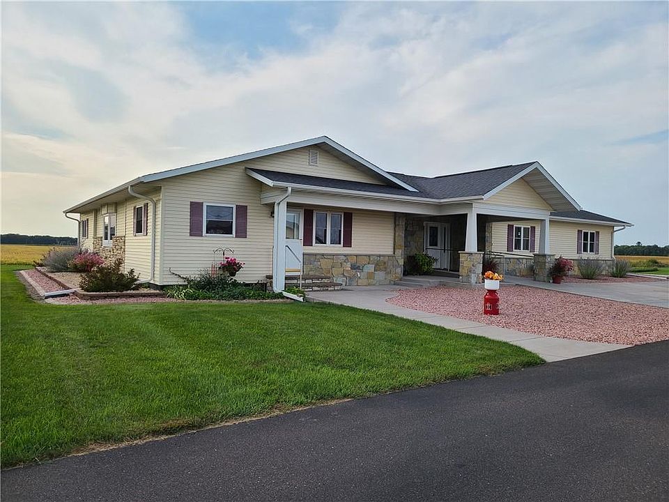 Immaculate farmstead on 4 acres is sure to please your desire to live in the country and have a place for everything from equipment and toys to animals. The single story 3-bedroom home has had some great updates over the last several years with kitchen, oversized hallway, wheel in shower, oversized bathroom and 34x34 attached garage. The garage and home are zero entry and home provides all the living needs on the main level. Several outbuildings on the property include a floor heated workshop with tons of cabinet storage that is 30x63 with 6-foot overhang. A 48x104x14 high Machine Shed with power and concrete floor, and a 32x96 barn that is in great condition and has a drive-up loft. The entire property is groomed to perfection with white picket fence, trees, landscaping, and matching steel on all the buildings. You will not find a nicer, well-kept property than this one. This property would make an excellent wedding barn venue or other commercial business.