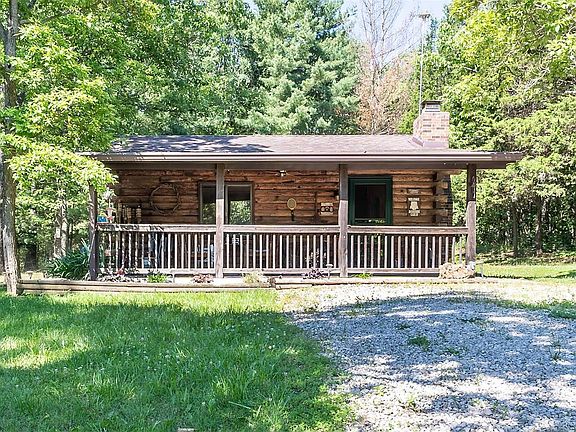 Very well kept updated log home with a bunk house that has sleeping quarters and a full bath, stone wood burning fireplace, laundry hookups, level private 2 lots, shed, septic updated, relaxing front porch. Come down and ride 4 wheelers. Enjoy the 2-100 acre community lakes for water and jet skiing, fishing and a large community pool.