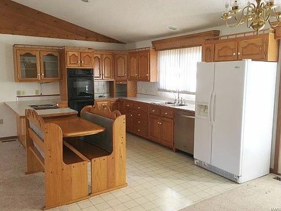 Open floor plan with many updates. Home sits just outside city limits on cul-de-sac with easy access to interstate. Kitchen features oak cabinetry with built in table & benches, Jenn-Air Range, Double oven, dishwasher and side by side refrigerator. Roof and Heat Pump replaced September 2014. Walkout basement finished 2013 with family room, full bathroom and large bedroom (does not have window) with walk-in closet (12x10). Family room has been plumbed for wet bar. Basement refrigerator, air hockey table, pool table and shelving in mechanical room will stay. Freezer in garage also stays. Water softener is owned. Vinyl siding installed 2006. Water heater new 2010. Wood Insert in living room with blower. New deck 2013 and covered patio. Much of the main floor interior painted 2016. Lots of square footage for the money and close to city limits and shopping. Covered Porch, Deck, Patio