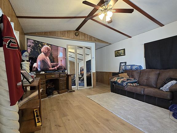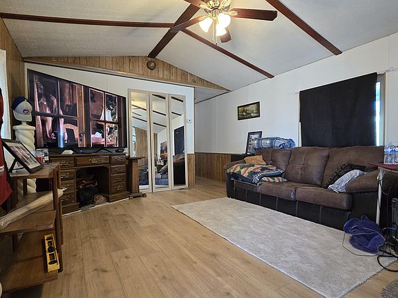 Spacious 2 bedroom 2 bath. Home features vaulted ceilings, laminate flooring in front room and hall, lots of storage in kitchen with a kitchen island with gas range. Nice patio area and storage unit. 2 car carport. Needs some tlc.