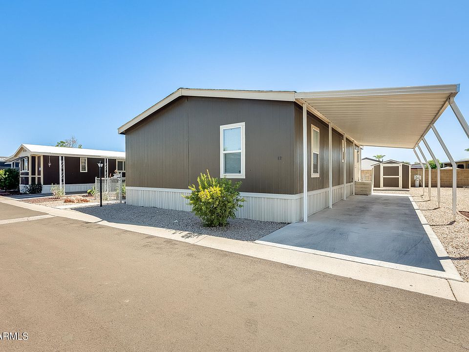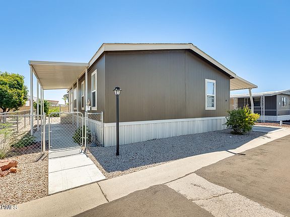 Well Crafted 3-Bedroom, 2-Bathroom Double Wide Mobile Home with Upgrades! Recently adorned with new carpet and a fresh coat of paint, this residence exudes a pristine ambiance that's ready to embrace its new owners. The house features split bedrooms and den. Outside, this abode continues to impress with a covered patio and a fenced yard plus fruit trees! Additionally, a covered carport and matching Tuff shed that offers ample storage space for all your outdoor essentials. And the best part? No HOA to worry about. This mobile home is not just a residence; it's a lifestyle upgrade. This property exemplifies comfort, convenience, and modern living. Don't miss your chance to make this exceptional dwelling your own!