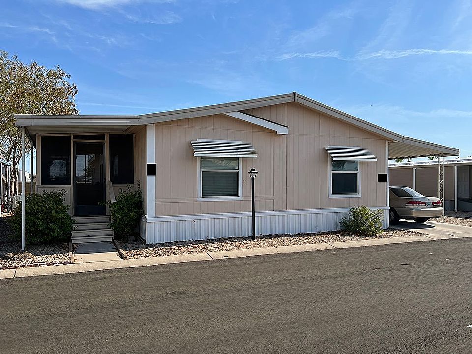Double Wide Manufactured Home located in an all ages park off of 75th Ave and Peoria Rd! This home has new vinyl plank flooring in both bathrooms, kitchen, laundry room, and dining room. It has fresh paint throughout the house and an updated kitchen! The home has a split floor plan with a large front room and family/dining room. Outside, there is a covered carport on one side and an enclosed patio that leads to a fenced dog run on the other side. ALL APPLIANCES PICTURED ARE STAYING. This house also features both an EVAP cooler and central air conditioner. Suncrest 1 is a desirable community with an abundance of communal amenities. This could be a great starter home for a family or the perfect retirement home!