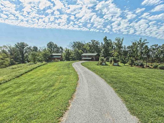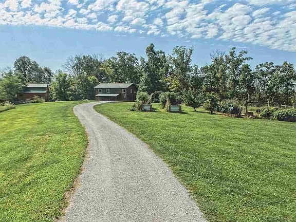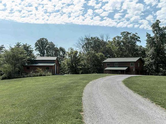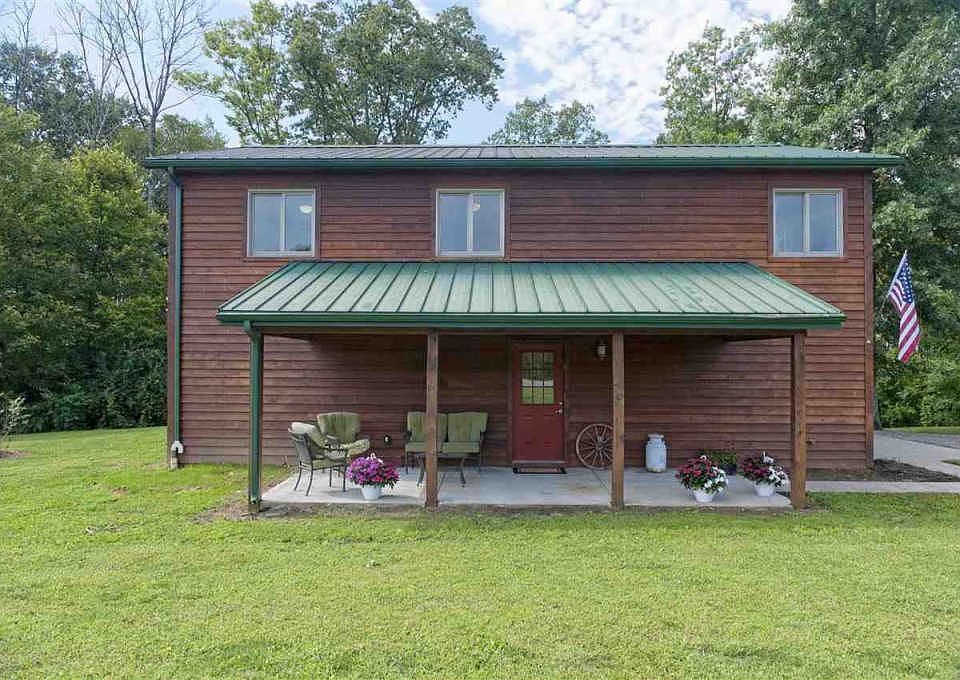 3bd 2bth raised ranch over garage w/space for 4 cars, cedar siding, a painted steel green roof. Separate bldg has guest suite with 16x24 open floor plan, full kitchen, 10x10 full bath, garage space & a chicken coop.Fully stocked 1.5+acre small lake. 5,500 sqft garden bed 4 raisedbeds all irrigated with 3Q HP submerged pump in lake. Garden Shed with porch overlooking lake. Underground utilities. Highspeed Fiberoptics internet & cable. Approxi 8 of 17+ acres cleared. 2.5 miles to RabbitHash, general store, Ohio River, ferry boat to Rising Sun, IN.