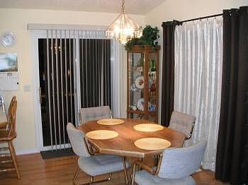 Home has been very well cared for, move in ready. Pergo like floors in living room, dining area and hall. Four bedrooms or use one as an office. Built in desks in 2 bedrooms. Full wrap gutters, newer garage door, air conditioner replaced in 2008, water heater and furnace replaced in 2007. Lovely backyard with trellis sitting area, garden area, 10x12 storage shed with comp. shingle roof and hard board siding. Refrigerator, garage shelving and freezer in garage are included!