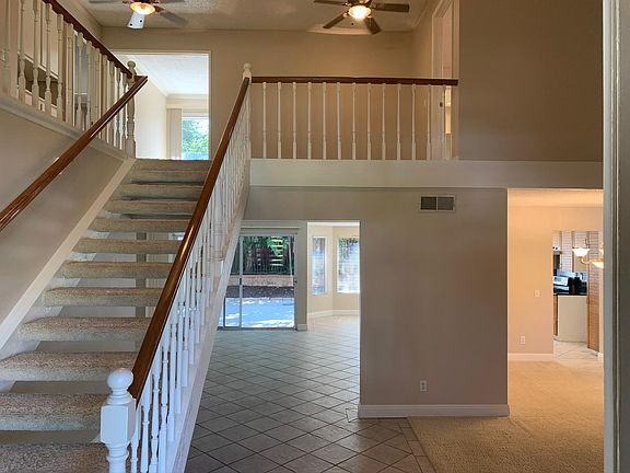 Large four bedroom home features two large master bedroom suites with one the first floor hosting its own full bath. Large 42" Roman Soaking tub in master bath with walkin closet. Large separate Ladies walk in closet area. New paint, heavy light color frizze carpet and stainless appliances. Ceiling fans throughout. Large balcony off two upstairs bedrooms with large patio slider doors. Oversized four car garage. Completely landscaped front and rear yards. All communication is through Zillow, No Phone calls accepted, filling out an application through Zillow is Highly Recommended. Tenant pays all utilities including trash.