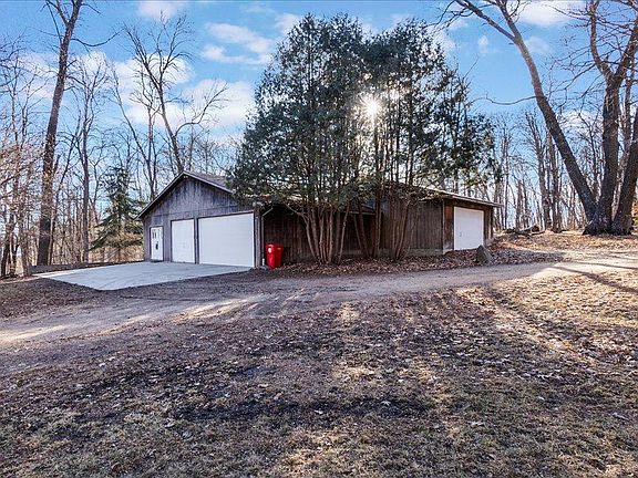 Welcome to your lakeside retreat! This remodeled gem offers the perfect blend of luxury and tranquility. Multiple bedrooms feature California closets for organized living. The bright open floorplan is perfect for gatherings and relaxation. Downstairs, discover endless possibilities, a brick fireplace, and plumbed for a third bathroom. The large garage (partially insulated) boasts 5 stalls, including a heated shop, extra deep making it ideal for boat storage. Outside, enjoy over 110 feet of lake frontage in a secluded 1.7-acre setting. With its updated features and serene location, this property is a dream come true for those seeking lakeside living at its finest. Don't miss out on this opportunity to make memories by the water!