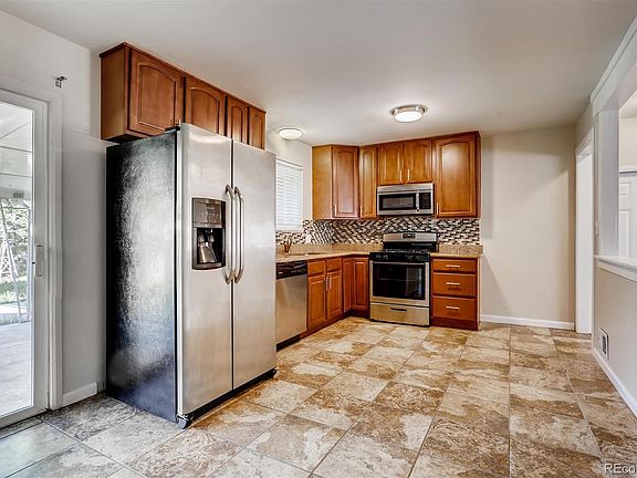 This is a great ranch style home in a quiet area of Northglenn. Refinished hardwood floors and tile throughout. New kitchen cabinets and countertops complete the large kitchen. Huge yard with a workshop in the backyard. Each main level bedroom has a new ceiling fan. All three bathrooms feature a black and white palette that feels fresh and luxurious. Downstairs you will find a huge entertainment room with an original fireplace. The laundry room allows for extra storage or freezer for the prepping family. You will also find a workshop and one bedroom and bathroom to complete the basement. The basement bedroom is non-conforming. The huge yard boasted a play set and roof top patio for entertaining the whole family. Walking distance to Vantage Point High School, Centennial Sculpture Park and Charles C. Windburn Park.