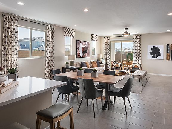 New home builder model home with many upgrades. Single-story Riverton floorplan with Mid-Century Modern style exterior. This open floor plan features a three bedrooms plus a flex room that can serve as a home office, game room or sitting area. The owner's suite has a spacious walk-in closet and bathroom with oversized vanity and step-in shower. The spacious kitchen features a large island with ample sitting space.