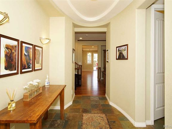âWelcome Homeâ to this immaculate 4 level / 5-bd 4-ba cul-de-sac home in Highland Ranchâs Hearth community. This amazing home features trail access to Danielâs Gate Park and Southridge Rec Ctr, along with backyard views of the Rocky Mtns and beautiful sunsets. The yard is professionally landscaped with a variety of private and active spaces, including a Sport Court © and professional-grade in-ground basketball hoop. Mature trees frame the over-sized yard with a Trex deck, and stamped concrete patio perfect for entertaining large groups. The interior of the home is open/spacious with custom-crafted plantation shutters, a combination of hardwood/slate flooring throughout the common areas/office, built-in cabinetry and 9â doors and ceilings. Main floor spaces include: a great room with two story stone fireplace and ceilings, and slate floors; Nanny/guest room; full bath; oversized laundry and mud room; and large gourmet kitchen with: Kitchen Aid stainless steel appliances, including a gas range, double oven, built-in wine cooler and new dishwasher; granite countertops; wood floors; and a freestanding center island. Ebony laminate flooring in the large master suite compliments walls recently painted in grey hues and decorated with crown molding and wainscoting. The attached master bathroom is a combination of granite and slate tile, with two sinks and a double shower. Upgraded carpets and Elfa shelving have been installed in all of the bedroom closets, including the large walk-in master. The 3rd floor two-person office easily accommodates room for two desks, credenzas, meeting table and sitting area. Large windows provide panoramic views of the Front Range. Addtl features include: central vacuum, stereo speaker, and security systems; unfinished basement; extra exterior outlets (even in the eaves!); front/backyard solar lights; two air conditioning units; two water heaters; 2-car tandem garage; newly replaced roof; and recently painted stucco and siding exterior.