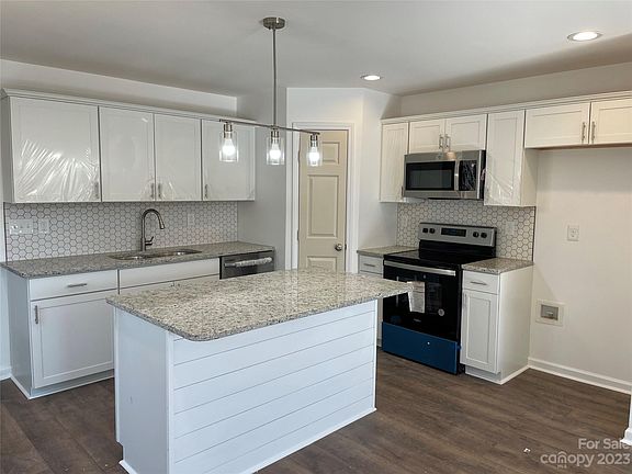 Welcome home! This brand-new ranch home is on .67 acres in a great Hickory location near downtown. NEW LVP flooring throughout all main living areas and bathrooms. Effortlessly entertain guests with the open floorplan from the great room, dining area, and kitchen. The kitchen features a large sink, granite countertops, white shaker cabinets, ALL NEW SS Appliances, and seating at the island. There is a laundry room right off the kitchen as well! Split bedroom plan with the primary suite tucked in the back of the home for maximum privacy. The primary suite features a ceiling fan, dual vanity with granite countertop, a large walk-in closet, and a tiled shower. On the opposite side of the house, there are two guest rooms, each with a closet and a shared full bathroom with a single vanity with granite countertops and tub/shower combo. Enjoy the covered front porch and private backyard, with NO HOA. Come see this custom-built home today!