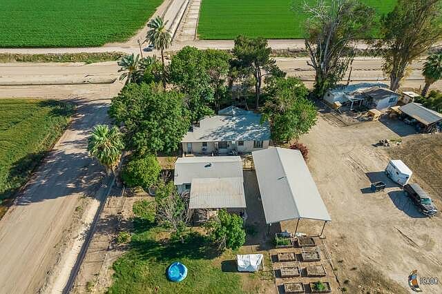 Picturesque country property ready to call your own in 30 days! Located north of Brawley, a quick hop on the road, and you are only 8 minutes to home from the edge of Brawley. This cute home sits on over 1.4 acres of ground and is the perfect place for animals, storage, outdoor fun, you name it! The home has recent flooring, electrical and plumbing upgrades. The main home is a 3 bed 1 bath, and the detached garage conversion has an office/bedroom and utility room with another bathroom. The vintage barn measuring over 40x25 on concrete slab is a great place for storage or a workshop. The extra tall carport is perfect for a trailer, RV, or equipment. Endless opportunities with this private farm home in the country, not too far from the city!