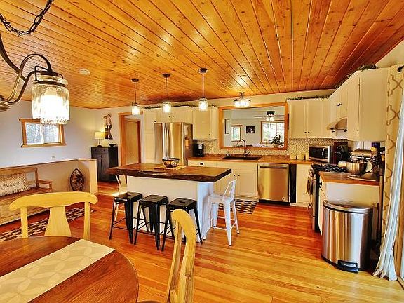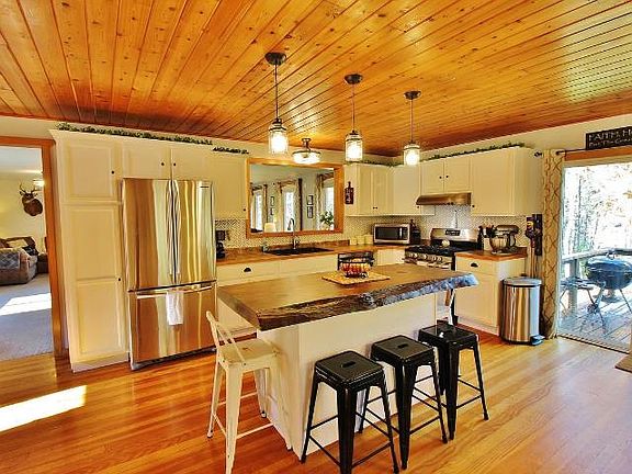 Check out this gem on quaint Chickaree Lake. Located on almost 3.5 acres, this 3-bedroom home has many new and remodeled features. Enter on the top floor to a refinished kitchen and dining area, with character rich wood flooring and gorgeous tongue and groove ceilings. There is an oversized living room plus nook adjoining the kitchen with a convenient 1/2 bath. The 1st floor has all three bedrooms, full bathroom w/tub, laundry, and plenty of storage. Most rooms in the home overlook the lake and there are multiple entrances & exits. There is a partial basement housing a new hot water heater plus an LP furnace. Additional heating source includes a wood broiler just outside the home. Overlooking the lake is a well-maintained deck and a beautifully landscaped fire pit with stone retaining walls. The owners have gone great lengths to make this home move in ready. Start your journey to privacy today!