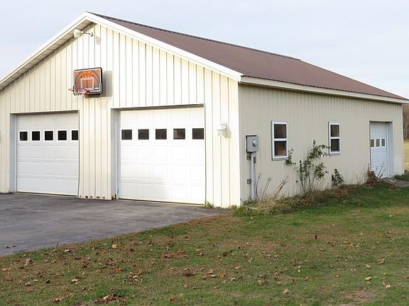 Country estate on park like setting with contemporary house and large detached garage. Enclosed porch gets plenty of sun and has screens and storm windows so can be used for 3 seasons. Garage has electricity and walk up stairs to large storage area. Luxuriate in your hot tub with mini bar in its own little building. Large flat, sunny yard. Plenty of room for gardening. Can have lots of fun here.
