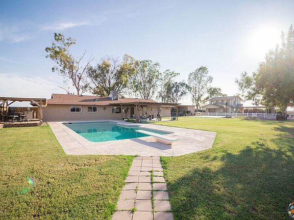 Welcome to this unique gem of a house, 1096 E Dickerman outside of Brawley. This quiet country home boasts 2.76 acres of land nestled in the quiet country to call your own. The property has a large one story main house, with large rooms. The AC is new and a new roof was installed 6 years ago. As you step into the backyard, you will see a large sparkling pool, perfect for hot summer days. Adjacent to the main house is the original 4 bedroom ranch house built on the property. With a little TLC, it could become a nice guest house for family and friends. Behind the ranch house you will find a covered parking area, large enough for any RV, boat, off road vehicles, or whatever you own. Next to the parking area is a large workshop that even has its own restroom. Across from the shop is a large horse coral, where you can enjoy the country lifestyle of owning your own horses. This is a unique home that has it all. These properties do not come up for sale often, contact your favorite Realtor to schedule a showing soon!