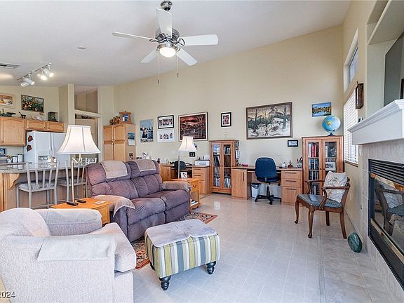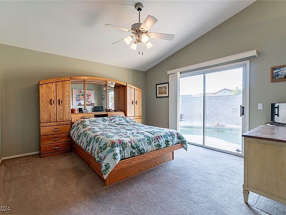 Made for gatherings. Large, flowing family room-kitchen opens to spacious yard with pool & covered patio. Pool pump new 2002. Oversized solid surface snack/serving/breakfast counter. Roomy pantry. Furnace & A/C new 2022. 5 ceiling fans. 3-car garage w/storage cabinets converted to 2-car with air conditioned studio. Primary BR suite, features vaulted ceiling, fan, dbl vanity, large mirrored walk-in closet, separate shower & tub, large privacy window. Convenient to award winning schools, hiway ramps, Galleria Mall, Sunset Station Casino, major retailers (incl Costco & Walmart) & specialty shops, family & fast food dining, park & more. $22 HOA incl alarm monitoring. Low utility bills.
