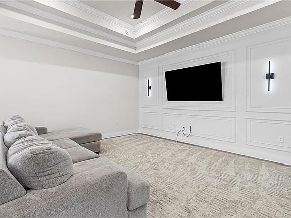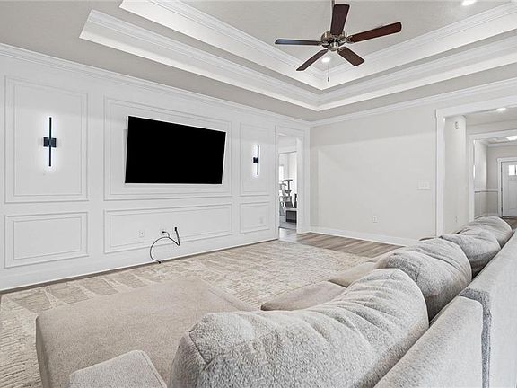 Lyra quartz countertopsCrown moldingTray ceilings