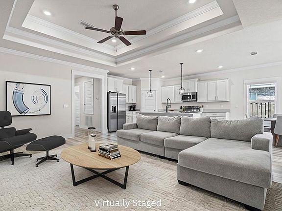 Look at this stunning, better-than-new, single-story residence in Foley's Quail Landing subdivision! Well-designed split 4/3 spread across 2,117 square feet. Gorgeous custom features include Lyra Quartz countertops, Crown Molding, and Tray Ceilings. It's in Triple Mint condition inside and out, and it's move-in ready - including blinds and a 6-foot privacy fence! Speaking of privacy, this lot backs to neighborhood common area, so you won't have a neighbor directly behind you. Buyer to verify all information during due diligence.
