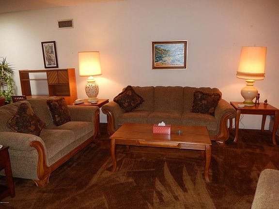 Perfectly situated next to the Desert Hills golf course with views of the course and some mountains. Gas beehive fireplace in the living room and one in the master bedroom. Some tile and laminate flooring. Wet bar, skylights, garage cabinets, workbench, and central vacuum. Walk-in tub plus shower in the master bath. Furnishings available.