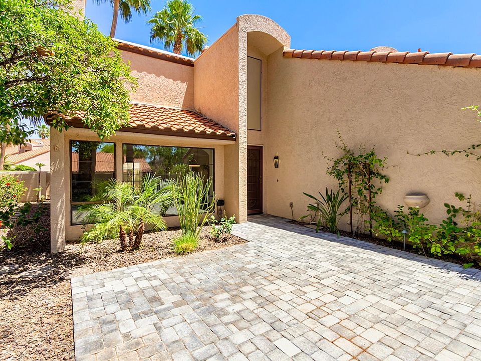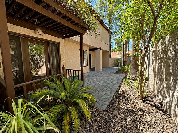 Call to coordinate appointment time. LOW UTILITIES! RENT INCLUDES SOLAR which significantly reduces the monthly electric bill! Low maintenance landscape reduces water bills! RENT Price you see is ALL Inclusive - NO additional hidden monthly fees, taxes, or management fees! PRIME Location within the Community, CORNER LOT, this home is STEPS from the Community POOL & SPA and Mailbox! PLUS Community features Tennis Courts! It's truly Special. UPGRADED 1,993 sq ft, 3 Bed / 2.5 Bath / Attached 2-Garage. NOTE: All three bedrooms are upstairs. \ As you enter the Private Gated Courtyard with beautiful lush landscaping, you'll LOVE the feeling as you walk in the Large Entry, Open Family room with STONE Fireplace and beautiful Picture Window, Tile Flooring throughout w/carpet only in bedrooms! Eat-in Kitchen overlooks backyard with Paver Patio, Separate Dining Room overlooks Family Room. Kitchen offers beautiful cabinets, granite counters, SS Appliances, All Appliances INCLUDING Refrigerator, Washer and Dryer. Large Spacious Primary Bedroom with Huge Walk-in Closet, Primary Bathroom offers walk-in shower, large tub, double vanities, separate toilet room. Two guest bedrooms, one has a Private Balcony to enjoy beautiful evening weather. Community Pool, Community Tennis Courts, Close to 101, grocery, restaurants, BASIS school, Cholla Park with Pickleball, Biking and Lost Dog Hiking trails, Golf and More! Great location, community and property! Owner/Agent. Call for details. No Smoking. Only 1 small dog allowed, 25 lbs or less. No parking on street - must park in driveway or garage. Occupied. Alarm Activated - Must have appointment for showing. 48 hour notice required for showings. Must have online Zillow Application completed in advance.