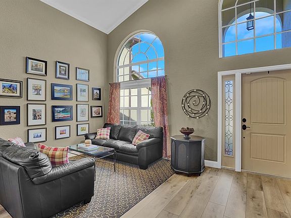 This immaculately maintained pool home has everything you’ve been searching for, including a 2019 tile roof, all impact windows / doors, and an oversized pie-shaped lot. Inside, you'll find gorgeous luxury vinyl flooring (2023) downstairs and new carpet upstairs. The renovated kitchen features newer appliances, granite countertops, wood cabinets, and a spacious layout overlooking the living area. The home features one full bedroom and bathroom downstairs, offering flexibility for guests or multigenerational living. Step outside to an oversized screened-in enclosure, where you'll find a newly resurfaced, heated pool, a large covered patio, and expanded pavers overlooking your private oasis with no rear neighbors. All A school district, with low HOA fees and access to resort-style amenities